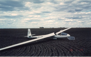 Your first solo flights are flown in the same type of glider you learned to fly in, but after you gain experience you are converted to higher performance single seaters. Inititially you fly locally, this means you are always close enough to be able to land back at the airfield. As you progress you generally are trained to land away from the airfield, usually in ploughed paddocks. This is the club Hornet, this was the club x-country single seater, now there are sometimes other x-country gliders available to members.