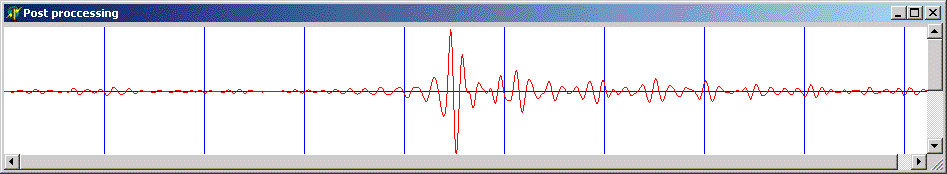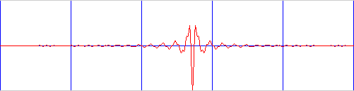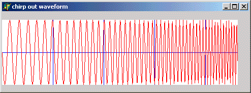 To see what a perfect echo would look like after correlation we correlate the chirp with itself. This image uses "screen" co-ordinates so down is positive. I'll fix it one day. You can see a sharp spike but also some other lumps and bumps.